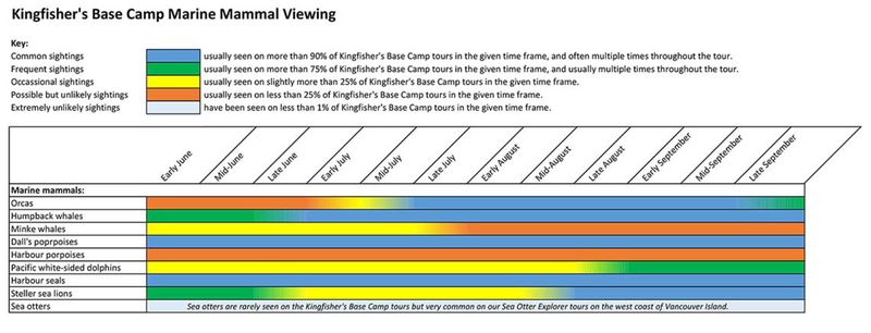Beste seizoen: De kansen op het zien van orka’s zijn het beste vanaf half juli. Als je eerder gaat is er nog steeds een grote verscheidenheid aan dieren in het wild te zien, zoals bultruggen, zeehonden, bruinvissen, Amerikaanse zeearenden, maar orka waarnemingen zijn minder frequent.
