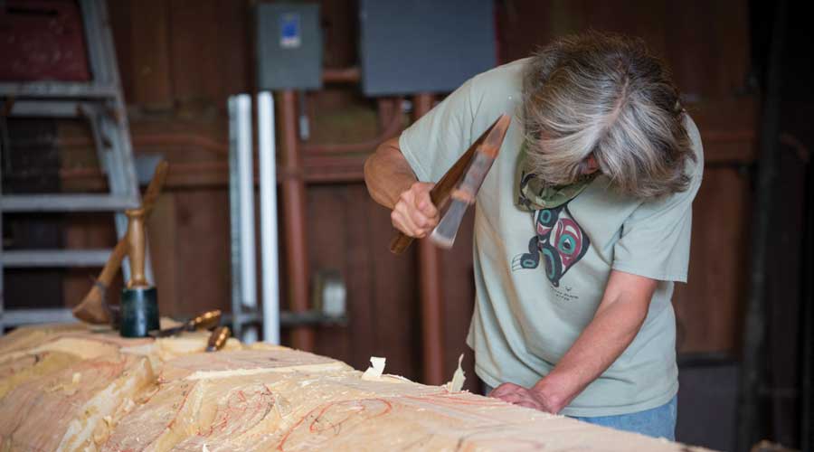 De Haida en de Tlingit hebben een lange traditie in het snijden van totems en ceremoniële voorwerpen, die vaak buiten het huis worden geplaatst om aan te geven wie er heeft gewoond en om een korte uitleg te geven over hun familiegeschiedenis. Het is een kunstvorm die ze tot op de dag van vandaag beoefenen.