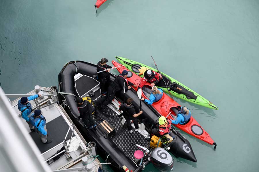 Hoewel uw expeditieschip speciaal is ontworpen voor vaartochten in (Ant)arctische gebieden, zijn er grenzen aan waar het naartoe kan varen. Hier komen de kleine verkenningsboten van pas. Geniet van het glijden over het water terwijl u het omringende witte landschap en de drijvende ijsbergen bewondert. Misschien spot u wel zeehonden, walrussen of walvissen die zich voeden met krill. Hou ook oog op de wal, want goede kans dat u op veilige afstand een ijsbeer spot.