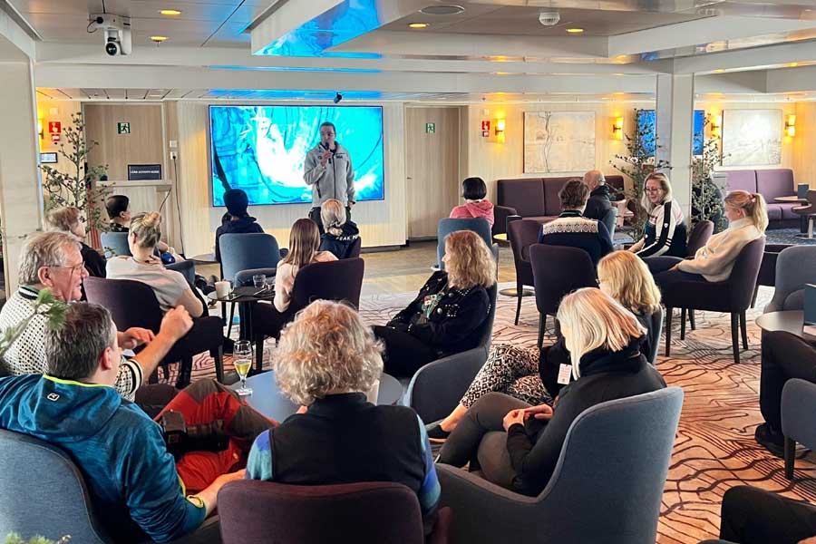 Uw deskundige expeditieteam zal lezingen geven over uiteenlopende onderwerpen, zoals geologie, mariene biologie, geschiedenis, fotografie en ornithologie. Deze lezingen vinden plaats in het wetenschapscentrum aan boord van het schip, op het dek, aan land tijdens een landing of tijdens vaartochten in kleine boten.