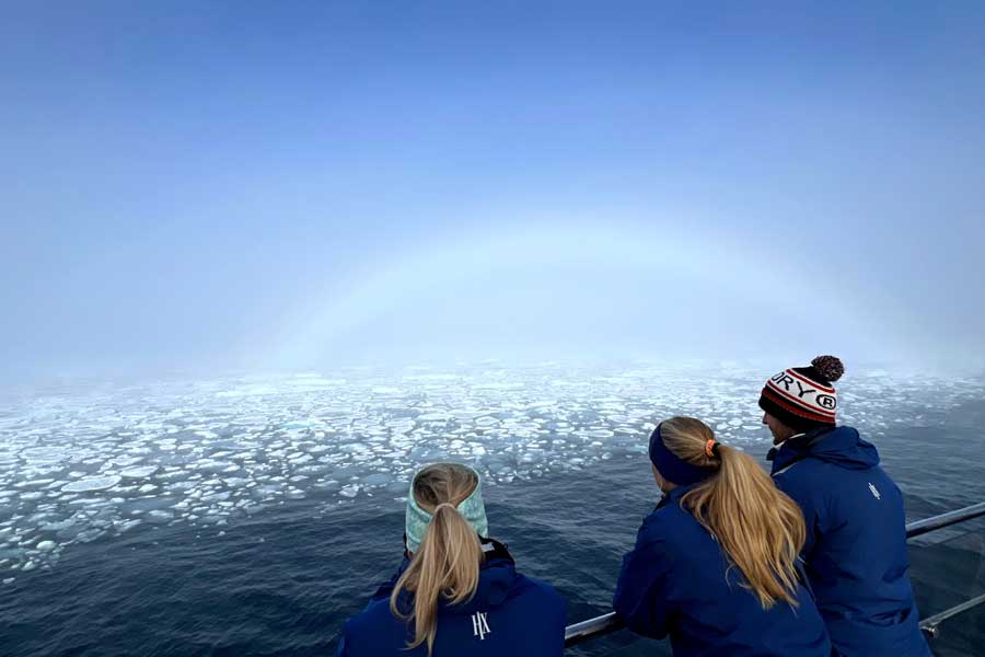 Ervaar de unieke kans om naar de rand van de noordpoolijskap te varen. Als de omstandigheden het toelaten, varen we noordwaarts en steken we de 80e breedtegraad over om de steeds veranderende ijsrand te verkennen. De overgangszone tussen de ijskap en de zee is een magische, maar vergankelijke plek waar het water gevuld is met ijsschotsen en drijfijs. Vanaf het schip zijn er uitstekende mogelijkheden om dieren in het wild te spotten, zoals ivoormeeuwen, zeehonden en walrussen die luieren op het glinsterende ijs. En als de omstandigheden goed zijn, laten we onze expeditieboten te water en genieten we van een onvergetelijke ervaring van dichtbij te midden van het drijvende ijs.