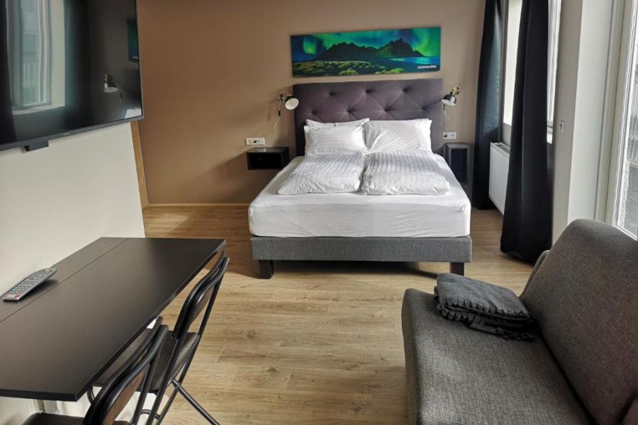 Goede kamers en studio`s in het voetgangersgebied in het centrum van Akureyri. Alle kamers hebben eigen douche en toilet en TV. Tevens zijn er een aantal studio appartementen met kitchenette, geschikt voor 3 of 4 personen, met een 2-persoonsbed en een slaapbank. Sommige appartementen hebben een balkon. De gasten kunnen gebruik maken van een TV-lounge met gratis koffie/thee en kookfaciliteiten. Gratis wifi. Self service check-in. Op de begane grond is de sfeervolle Centrum Kitchen & Bar, waar je kunt dineren, lunchen of een drankje bestellen. Bij goed weer kun je plaatsnemen op het terras. Rondom het hotel zijn leuke winkeltjes, bars en restaurants. Vanuit Akureyri vertrekken excursies om walvissen te spotten.