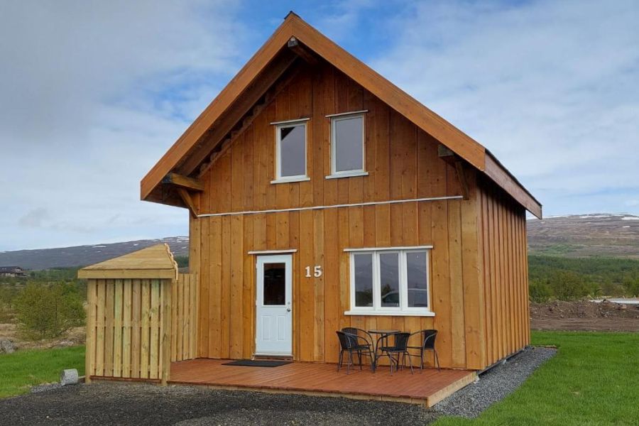 Ruime vakantiewoningen, 3 km. van Egilsstadir, de grootste stad van Oost-IJsland. De 3 cottages (64 m2, max. 6 personen) hebben een woonkamer met houten vloer, flatscreen TV en eethoek. Kitchenette met koelkast, kookplaat, magnetron, waterkoker, broodrooster en koffiezetapparaat. Gratis wifi. Zithoek op de bovenverdieping. 3 slaapkamers met resp. 1 met 2 persoonsbed op de begane grond en 2 x met 2 aparte bedden op de bovenverdieping. Badkamer met douche, toilet en haardroger. Terras met buitenmeubels. Huur bedlinnen, handdoeken en eindschoonmaak zijn inbegrepen. In Egilsstadir vind je restaurants, supermarkt, een golfbaan en een zwembad. Op slechts half uur rijden van de Hengifoss en Litlaness watervallen, die je via een prachtige wandeling door een canyon kunt bereiken. Ook goede wandelmogelijkheden in Hallormsstadurskogur, het grootste bos van IJsland. Vlakbij Egilsstadir vind je ook het geothermale Vök Baths, waar je heerlijk kunt relaxen.