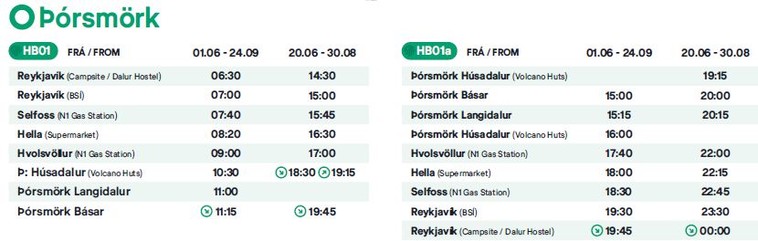 Het Thorsmörk dal, dat wordt omgeven door drie gletsjers, is het favoriete wandelgebied van de IJslanders. Aangezien dit natuurreservaat alleen per 4x4 voertuig bereikt kan worden gedurende de zomermaanden (1/6-24/9) met een aantal gevaarlijke rivierdoorsteken kun je gebruik maken van de dagelijkse Highland Bus dienst van Reykjavik Excursions. Alleen al de tocht met de terreinbus is een avontuur, vanwege een aantal gletsjerrivieren waar de bus doorheen moet rijden. In het Thorsmörk natuurreservaat heb je de tijd een wandeling te maken met keuze uit verschillende routes. bijv. de Thorsmörk Panorama Trail, die leidt over de Valahnukur berg, met prachtige uitzichten vanaf de top. Bij het restaurant kun je wandelkaarten kopen. Je moet deze bus vooraf reserveren.