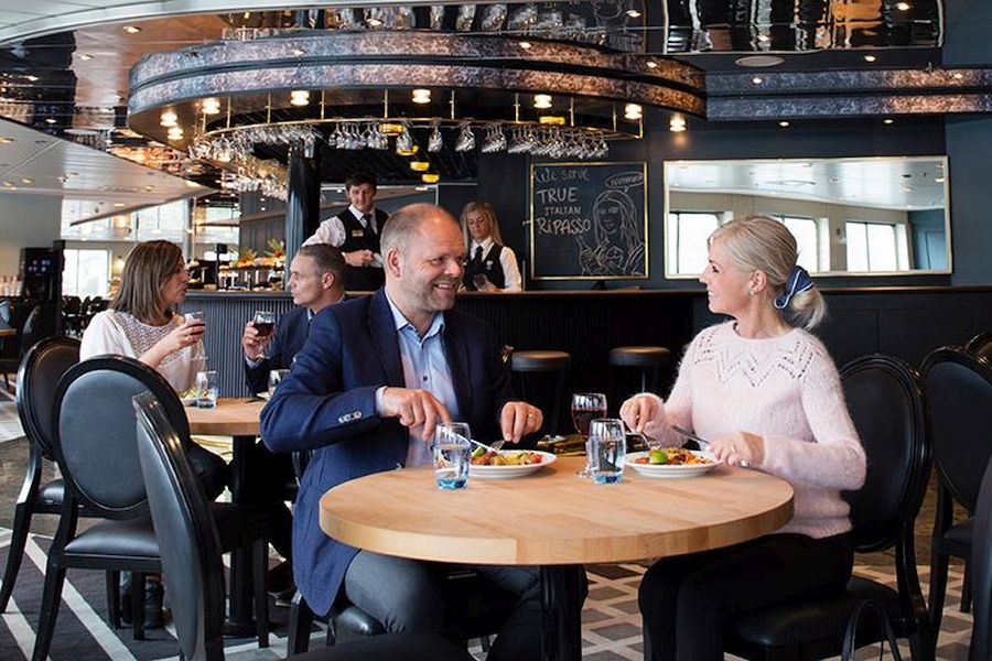 Het schip biedt plaats aan 1.482 passagiers en 800 auto’ s en beschikt over een (buiten)zwembad, sauna, bioscoop en kinderspeelplaats. De comfortabele hutten zijn uitgerust met douche en toilet, een TV, kledingkast, bureau/kaptafel en bedlinnen. Alle buitenhutten zijn voorzien van een raam, alsmede een kleine koelkast. Daarnaast zijn er 6- tot 9-persoons couchettes beschikbaar (onder het autodek), waarbij de douches en toiletten worden gedeeld met andere passagiers. Bij de couchettes is het bedlinnen niet inbegrepen (wel te huur). Je hebt aan boord de keuze uit verschillende restaurants: het Skansagardur buffetrestaurant of het gastronomische Munkastova Restaurant. Het Noatun Cafetaria biedt de keuze uit een groot aanbod eenvoudige, lichte maaltijden en je kunt hier ook ontbijten. In de Viking Club kun je een cocktail drinken en dansen op live muziek. Geef je meer de voorkeur aan een relaxed avondje, bezoek dan de Naust Lounge en geniet van de live piano muziek in de comfortabele sofa’s.