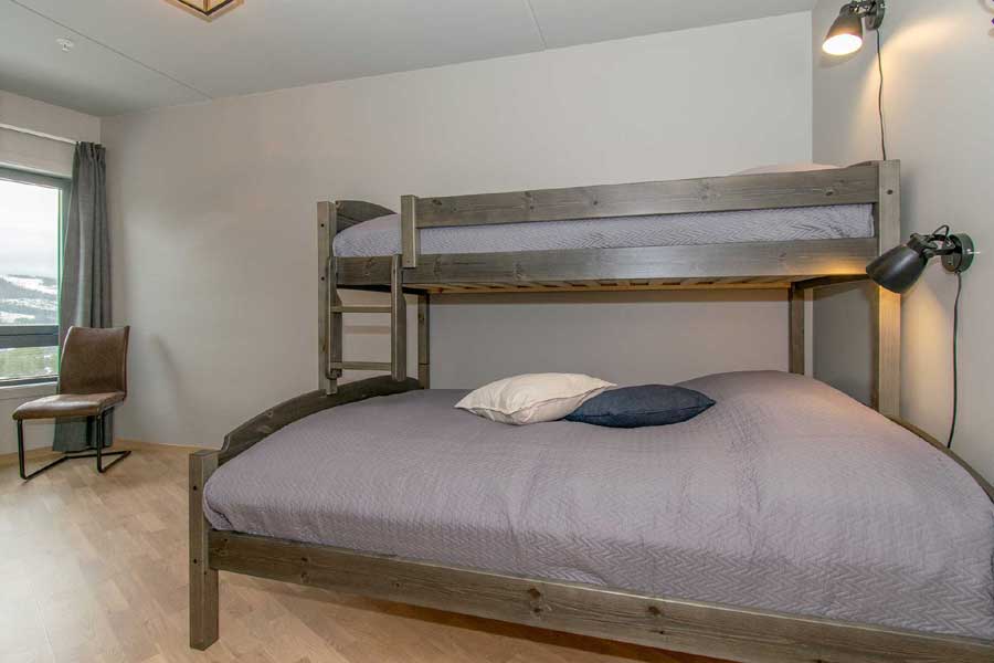 Moderne 3-kamer appartementen, die stijlvol zijn ingericht. Woonkamer met zitbank en fauteuil, televisie en een open kitchenette, met 4-pits elektrisch fornuis en oven, magnetron, vaatwasser en koffieapparaat. Afhankelijk van de verdieping is er ook een balkon aanwezig. Er zijn twee slaapkamers waarvan de eerste een dubbelbed heeft en de ander een stapelbed met slaapplaats voor 2(3) personen (soms is het onderste bed 120-150cm breed). Badkamer met douche en toilet. Sommige appartementen hebben ook een wasmachine en droger. Elk appartement heeft een eigen skilocker op de begane grond/kelder. Gratis internet. Eindschoonmaak is inbegrepen.
