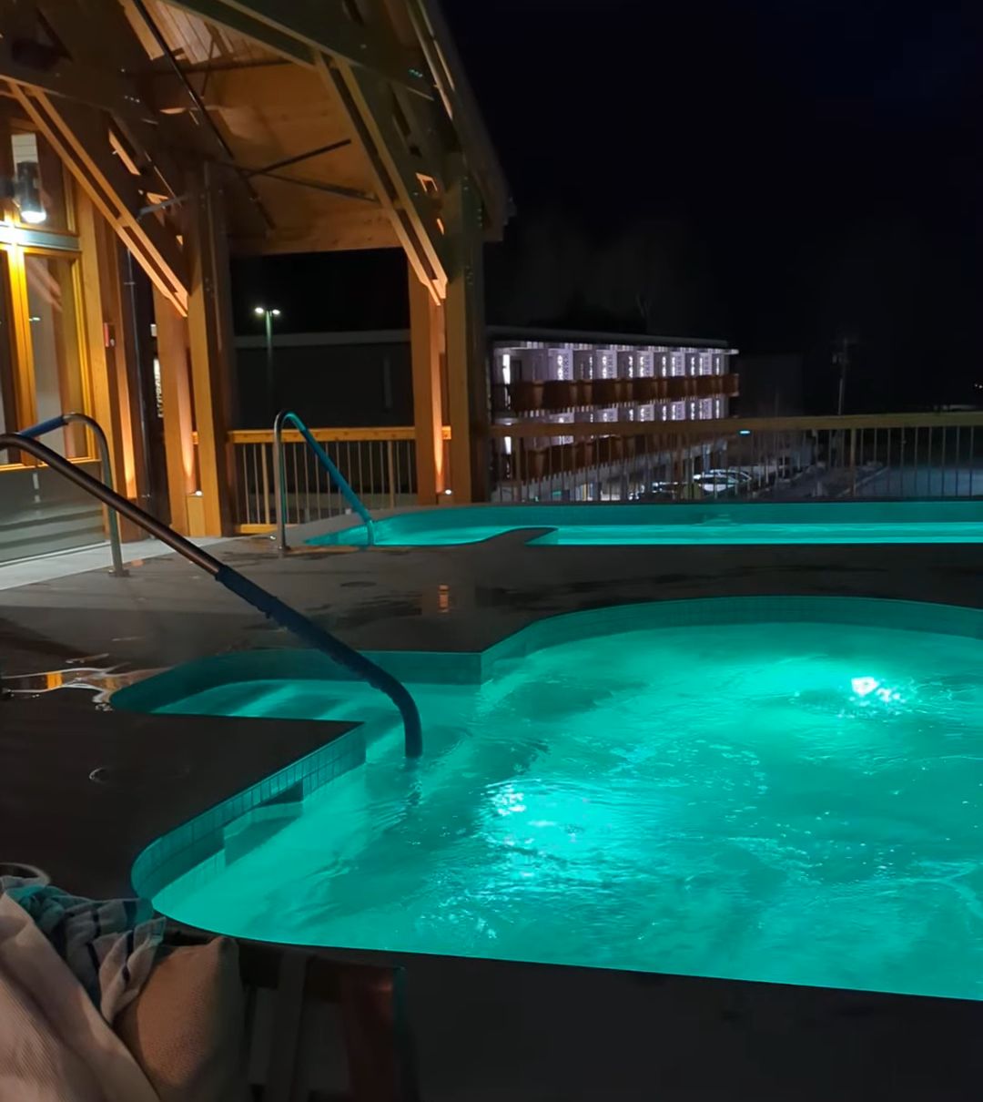 Aan het eind van de dag, als je van de pistes komt, uit het restaurant wandelt of van de fatbike stapt, dan wil je natuurlijk graag even ontspannen. Ook daar heeft Banff een antwoord op! Bijna alle hotels in Banff zijn namelijk voorzien van sauna`s en hot tubs of verwarmde zwembaden. Zo kan je bijvoorbeeld bij Hotel Canoe, Otter Hotel of Moose Hotel op het dakterras terecht voor een heerlijke dip in de hottub en dat samen met prachtig uitzicht over de bergen. Myrthe en ik verbleven bij Otter Hotel, aan het begin van Banff Avenue in het zogehete "Uptown Banff", en konden hier dus profiteren van de rooftop hottubs. Altijd een gekke overgang, als je door de ijskoude winterlucht loopt en vervolgens in een heel warm bad stapt, maar zeker ook heel fijn! En mocht jouw accommodatie nou geen hottub hebben, dan kan je ook doen wat ik tijdens mijn vorige reis naar Banff gedaan heb en naar de Banff Upper Hot Springs gaan. Deze hot springs liggen naast de Banff Gondola en bieden ook een mooi uitzicht over de Bow River en het dorp beneden in de vallei.