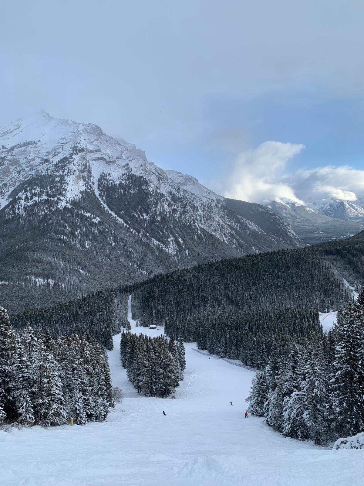 De eerste in de lijst is ook de meest voor de hand liggende: skiën natuurlijk! Banff is het uitgangspunt voor maar liefst 3 skigebieden, Mount Norquay, Sunshine Village en Lake Louise. Dus als je wintersportervaring hebt (en ook als je die niet hebt!) mag je een dag of 4 op de pistes zeker niet overslaan. Wij begonnen met een dagje bij Mount Norquay, de kleinste van de drie gebieden, en een hele fijne berg om mee te beginnen. Zeker aangezien ik geen skiervaring had, wat betekende dat ik onderaan de berg bleef om mijn eerste les te krijgen. Bij alle drie de skigebieden worden lessen aangeboden. Die kan ik nu persoonlijk aanbevelen, want mijn eerste les was echt top! Je wordt heel goed persoonlijk begeleid, en de les gaat zo snel of langzaam als jij wil. Myrthe had met levenslange skiervaring geen lessen nodig, dus die ging zelf op ontdekking uit. Het was voor haar even schakelen, want ze is normaal gesproken Oostenrijk gewend, maar met de vrijheid van de Canadese pistes was ze al snel om. De pistes zijn hier breder, langer en minder geprepareerd dan we in Europa gewend zijn, maar de sneeuw is hier ook zo zacht en vers dat prepareren veel minder nodig is. Daarnaast is "natural skiing" veel meer een ding in Canada, zo zeggen ze vaak: "What you can see, you can ski!"