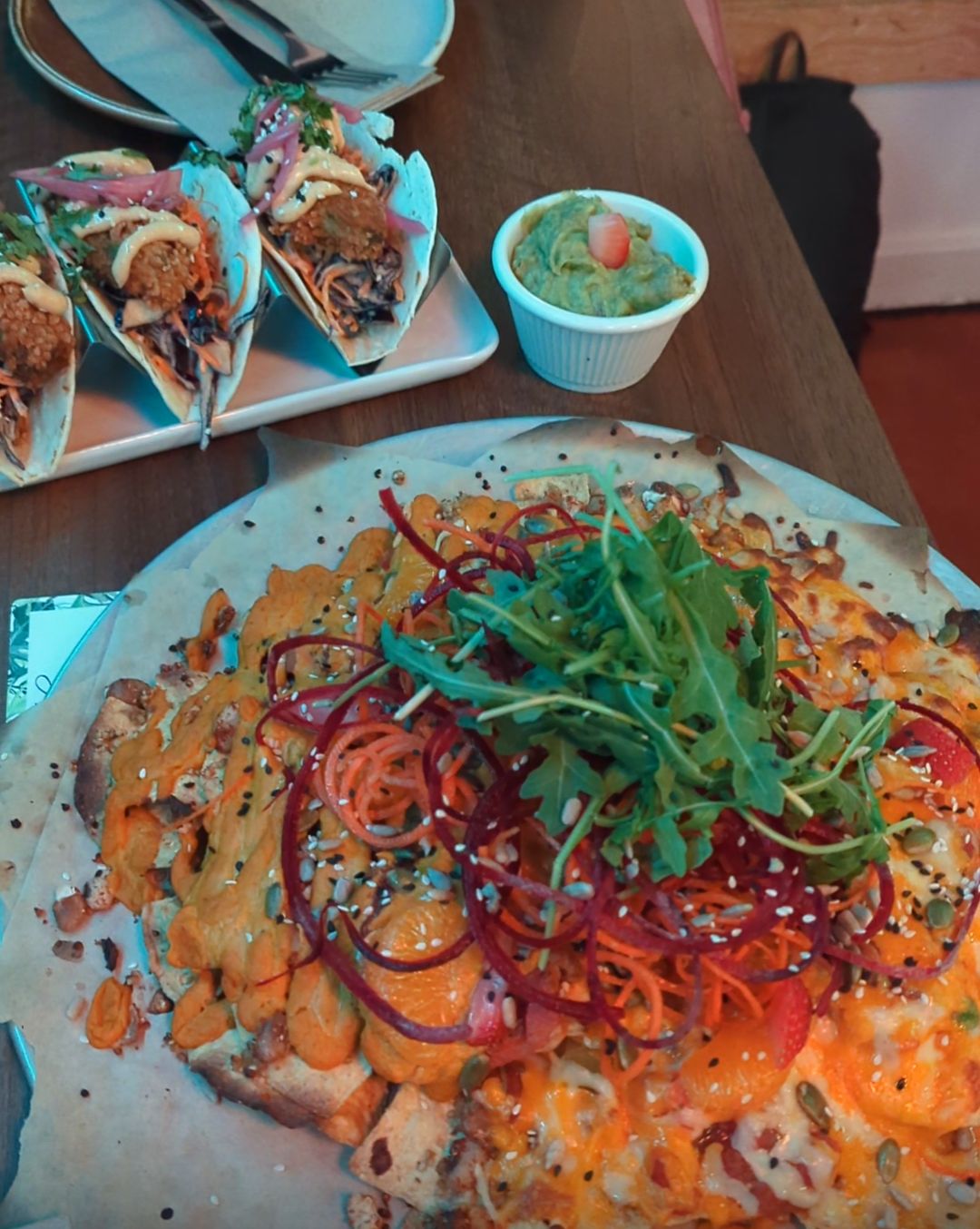 Het centrum van Banff is in de winter, naast alle sfeervolle kerstverlichting, ook heel gezellig vanwege de levendige horeca. Er zijn echt super veel leuke restaurantjes om uit te kiezen. Of je nou echt de Canadese cultuur wil proeven met een stukje Alberta beef of een hele andere keuken wil proberen, van Canadees tot Aziatisch tot Italiaans, alles is hier mogelijk! Tijdens ons bezoek aan Banff zijn we voor veel afwisseling gegaan. We begonnen met een diner bij Hello Sunshine, een hippe Japanse tent met super lekkere sushi en ramen en zelfs karaoke booths die je kan huren (zo dapper waren wij dan weer niet). De volgende dag gingen we voor authentieke winterse sferen met een pan vol kaasfondue bij Waldhaus, een van de vele restaurants van Fairmont Banff Springs Hotel. Waldhaus ligt aan de Bow River, heeft een hele gezellige Europese sfeer en was ook helemaal niet druk. Echt een fijn uitstapje net buiten het centrum. Verder hebben we ook onderzoek gedaan voor alle vegetariërs en veganisten onder ons (waaronder Myrthe, die vegetariër is) en zijn we naar Nourish Bistro gegaan. Alle maaltijden zijn hier 100% vegan. Als je er een keer komt zouden wij absoluut de World Famous Nachos aanraden. Deze bijzondere schaal nachos wordt geserveerd met een topping van maar liefst 27 ingrediënten, waaronder aardbei en augurk. Het klinkt heel gek, maar is verbazend lekker!