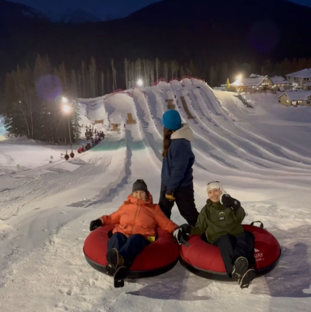 Een andere activiteit die absoluut aan te raden is is tubing! Dan roets je op een opblaasband met flinke snelheid over de besneeuwde berg naar beneden. Dit is bij zowel Mount Norquay als Lake Louise mogelijk en is inbegrepen bij de skipassen. Myrthe en ik hebben voor tubing helaas naast het net gevist, want dit was begin december nog niet mogelijk. Maar toen onze collega`s Henk en Marianne er begin januari waren hebben zij het wel kunnen ervaren en ze waren heel enthousiast.